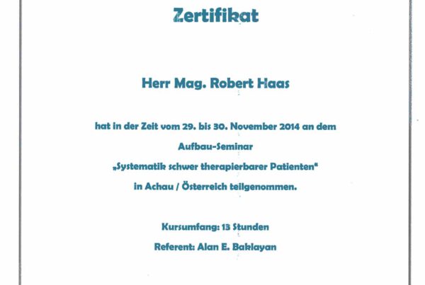 Aufbauseminar Baklayan Schwer therapierbare Patienten